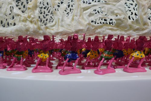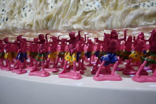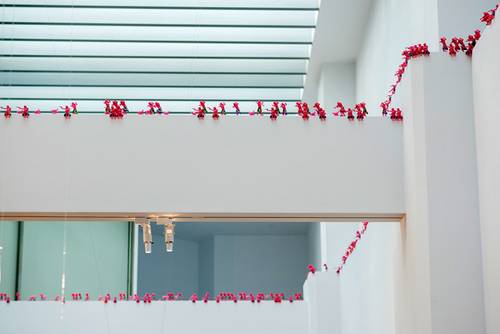 I made almost one thousand these tiny girls and I installed them in the gallery everywhere, such as bathroom, the entrance of the gallery, corners, reception table, windowsill, and etc.